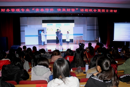 为了丰富同学们的生活,感受班级友情和温暖,2016年12月5日晚,学院财务管理专业在多功能厅举办了话剧专场晚会暨团日活动,活动的主题是“青春作伴,情聚财管”。学院副院长徐祗坤教授,党委副书记、副院长李宝文,财务管理专业辅导员李媛媛,学工办其他辅导员及200余名同学参加活动。