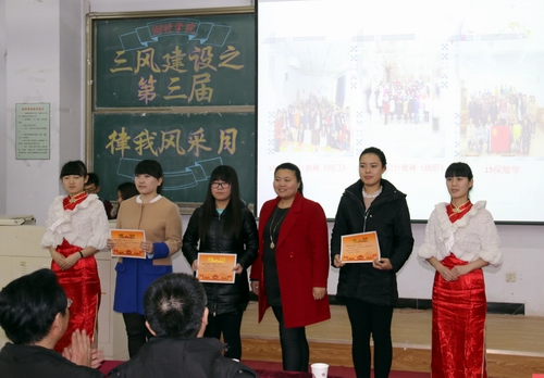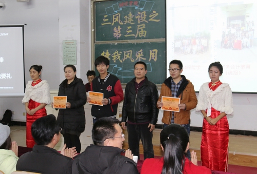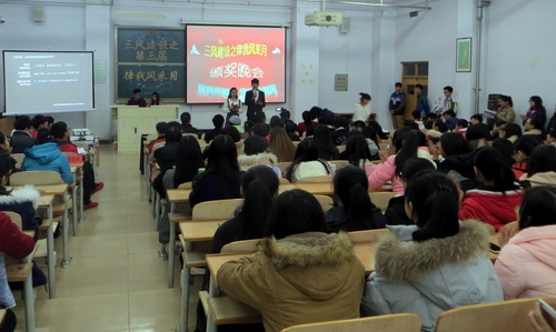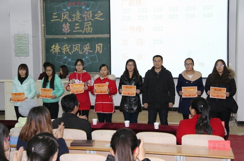 2015年12月10日晚,在逸夫楼B104 教室举办了总结和颁奖。获奖班级代表和学生代表分别介绍经验。学院主管领导、辅导员班主任参加晚会并为获奖单位和个人颁奖。