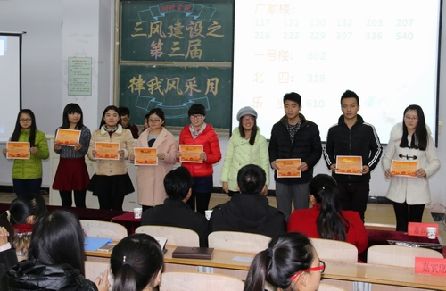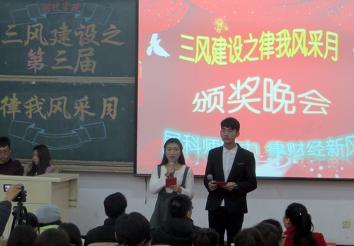 为了落实学校“三风”建设实施方案,强化学生的自律意识,自2015年11月初开始,学院开展了为期一个月的“‘三风’建设之‘律我风采月’”活动。本次活动的主题是“展科师魅力,扬财经新风”。