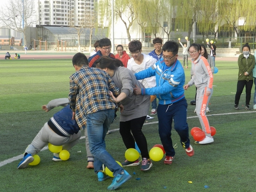 活动中,干部们共分成六组,以组间竞赛的方式逐项比拼。比拼的项目包括“萝卜蹲”、“保家夺垒” 、“口传心语”、“联合大游戏”等。这些项目均需小组的全体成员共同努力才能完成,是团队意识、组织能力、执行能力和团结协作能力的比拼。项目之间用“一字马”、“抢牌子”、“吹气球”等小游戏衔接串场。全体干部精心组织,团结协作,相互鼓励,全身心地投入到活动之中。运动场上充满欢声笑语。(编审:李宝文)