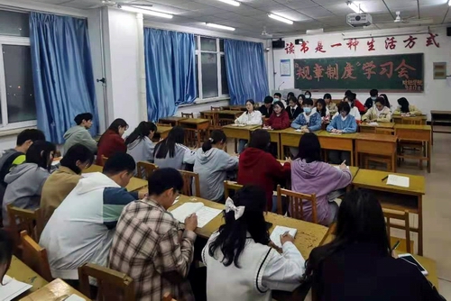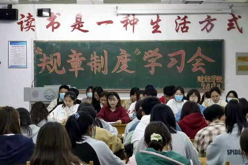 2021年4月19日晚,学院分团委学生会召集学生干部在逸夫教学楼A510教室召开集体学习会,集体学习《加强和改进新时代学联学生会工作实施方案》。共有47名学生干部参加集体学习。本次集体学习由学生会执行主席马雨露主持。