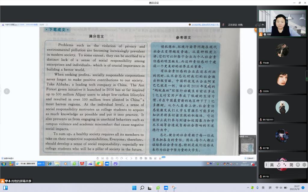 团支部于7月22日召开主题班会进行了阶段小结,辅导员肖艳老师针对四六级学习提出三点建议即明确英语学习的动力来源、要有清晰的目标、缓解英语四六级考试压力。肖老师作为英语写作学习训练营的营长对英语写作训练营的前期活动就活动形式与活动具体内容进行了小结。接下来各位营长刘绍婷、刘江曼、孙佳琪、丁栩慧、龙捷和薛子扬也分别对其训练营前期近两个月的活动进行了回顾和反思,并对接下来的活动顺利开展进行准备,共建学风特优型团支部。(编审:王志安)