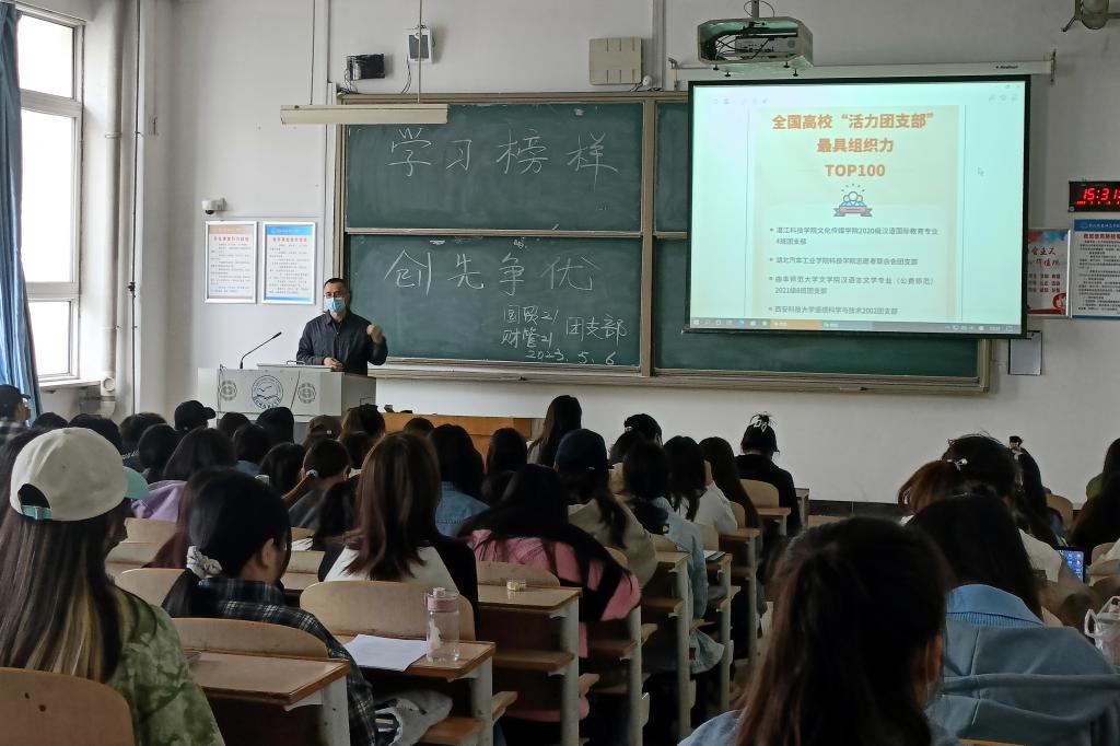 2023年5月6日,2021级财务管理专业、2021级国际经济与贸易专业120名同学在逸夫教学楼111教室召开团日活动,向我院2020级财务管理专业0102班团支部学习。团日活动主题是“学习模范,创先争优”。