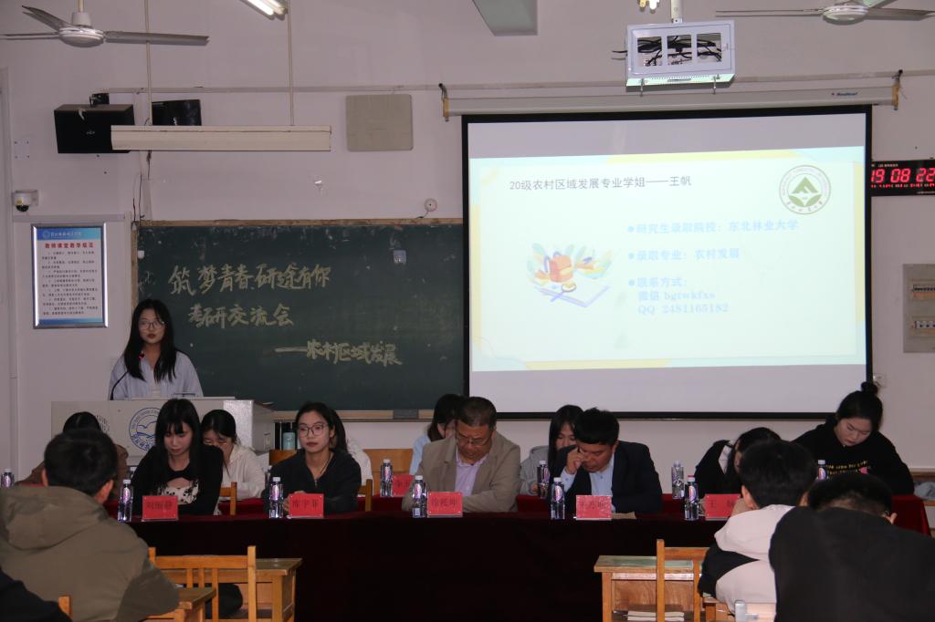 2024年4月24日,金沙检测线路js9521级农村区域发展专业成功举办了以“筑梦青春,研途有你”为主题的考研经验交流会,金沙检测线路js95副院长徐祗坤,专任课教师王亦明,20级农村区域发展专业考研成功上岸的王芝依、库宇菲、王帆、董晓佳、李玉珂、吕子怡、刘佳兴、刘丽静、支一丹、王姚等10位同学应邀莅临。