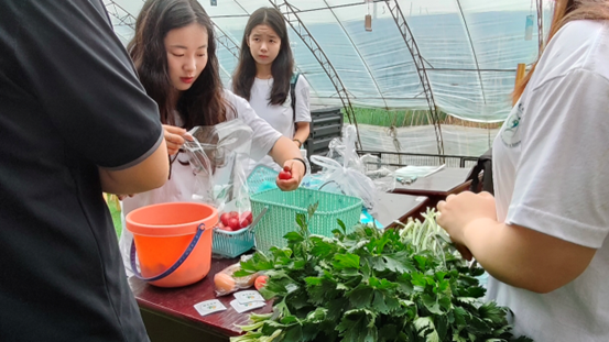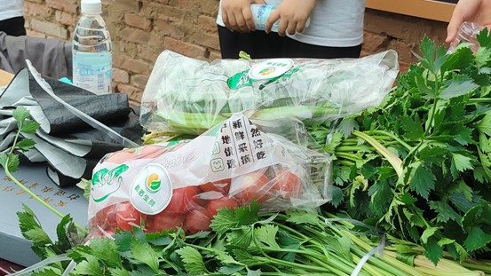 最后,志愿者们将今日的劳作成果——采摘分拣后的果蔬进行打包装袋,送与乡村和老师,并为朱庄村的“青年生鲜”与我校“科师农研”项目的合作作出了初步努力。