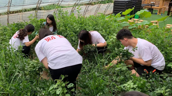 该团队走进果蔬大棚,参与朱庄村的”青苗守望“、”蒲公英“项目。菜园助农,体验农耕生活,并与环境工程学院志愿者进行比赛与交流合作,通过此活动不仅增进了对农业的认识,而且增强了团队协作力。