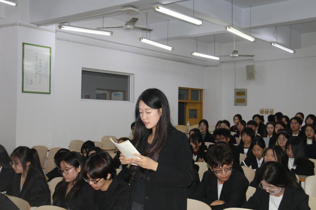 图为学生干事讲话