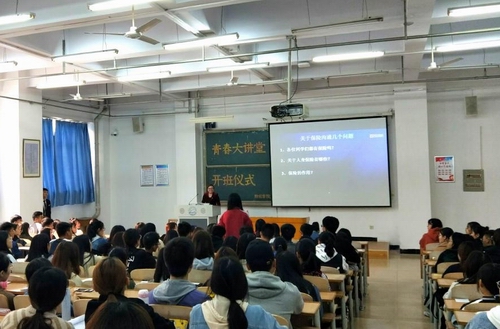 2018年10月25日,学院在逸夫楼B104举办了“青春大讲堂——科师订制成长引航”开班仪式,特邀请大童保险服务公司总经理王小玲为学生题为“科技驱动保险大变革”的专题讲座。学院相关领导和老师以及150余名学生参加了此次活动。