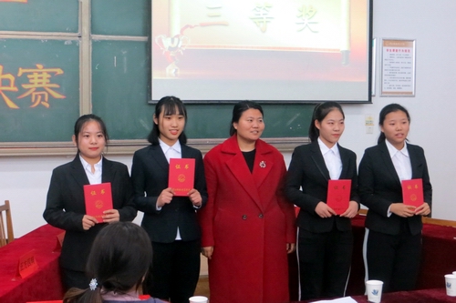 经过综合评判,财务会计教育专业180304班代表队获得一等奖,财务会计教育专业180102班代表队获二等奖,保险学专业18010203班代表队获得三等奖。此外,还评出了优秀辩手和优秀讲练奖。领导老师现场为获奖代表队颁奖以资鼓励。至此,为期一个月的本届辩论赛圆满结束。(编审:李宝文)
