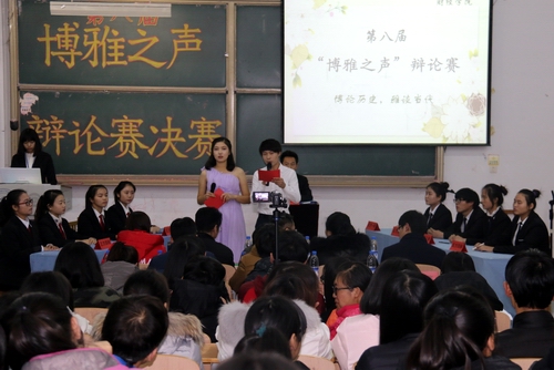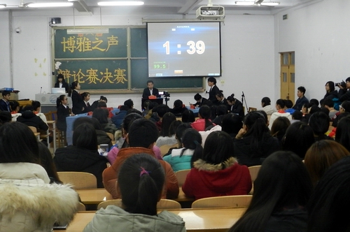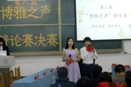 2016年11月30日晚,学院第八届“博雅之声”辩论赛决赛在逸夫楼B202如期举行。本届辩论赛以“博论历史,雅谈当代”主题。学院副院长徐祗坤教授,副院长杜茂宝教授,学院党委副书记、副院长李宝文,李国红副教授,王亦明副教授,学工办辅导员及120余名学生参加了活动。