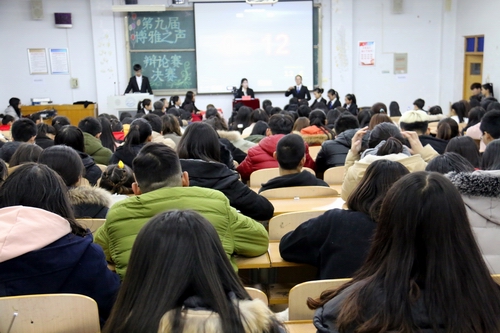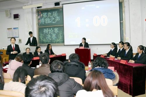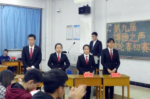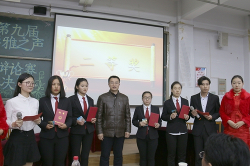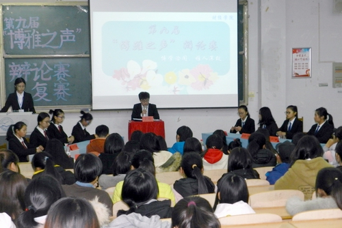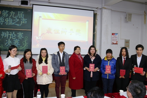 2017年11月30日晚,学院在B206教室举办了第九届“博雅之声”辩论赛决赛。学院党委副书记、副院长李宝文携学工办辅导员和200余名同学一起在现场观摩比赛。辅导员梁爽做精彩点评。