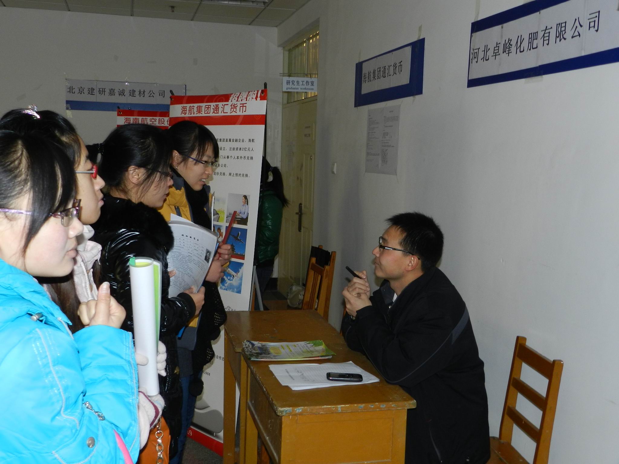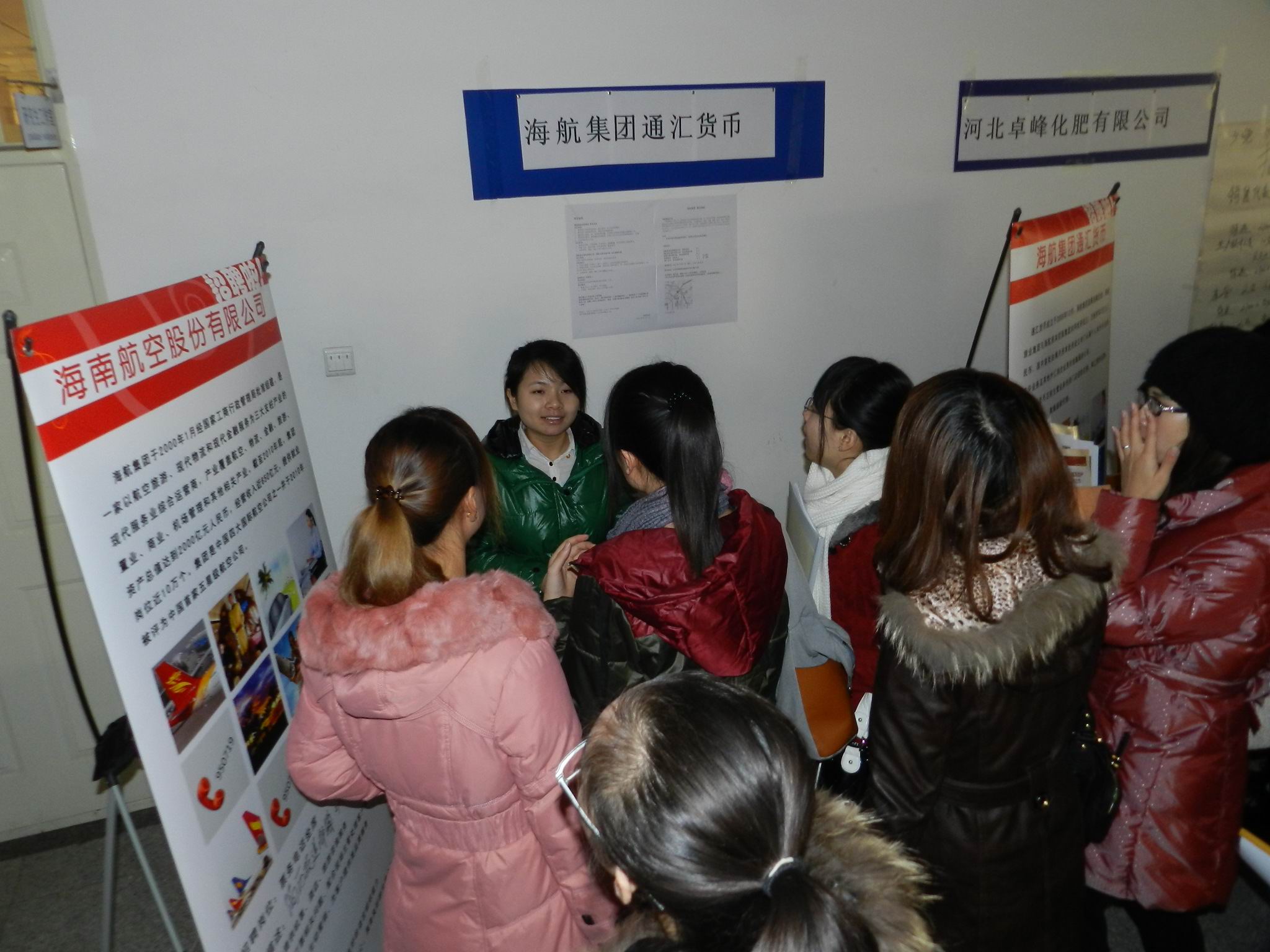 2011年12月4日,我校在秦皇岛校区举办了2012届毕业生双选会。双选会在图书馆2楼开辟了财经类专区,学院全部党政领导到现场指导工作,高伯文、卢亚君、张丽英、毛久智、戚兆川、李秀丽、陈世金、王小琳、肖艳等教师与会与用人单位交流并推介毕业生。