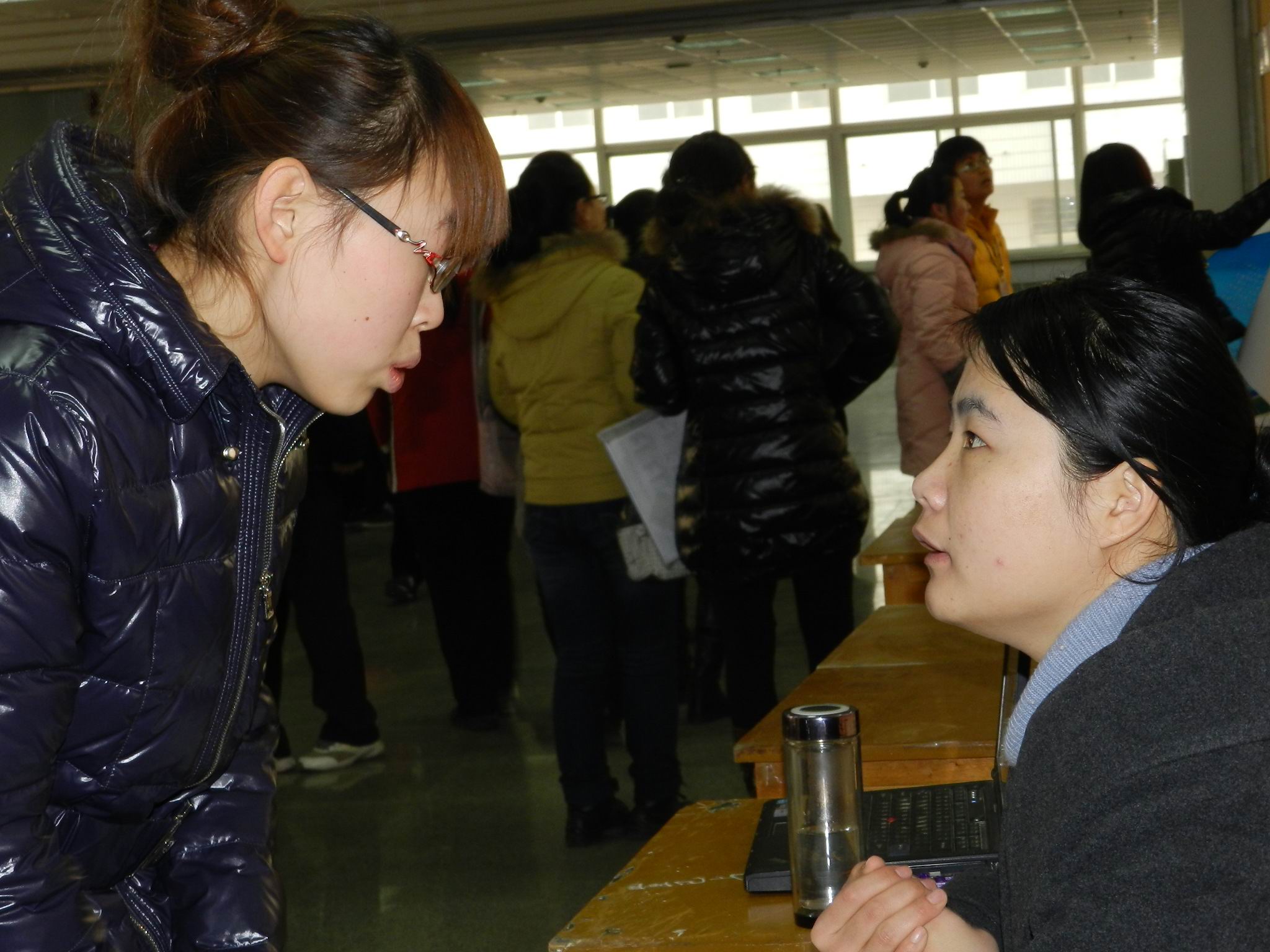 本次双全会上,我院联系的庞大汽贸集团、吉运集团、唐山金意陶有限公司、天津鑫利源商品交易服务有限公司秦皇岛分公司、范华保险秦皇岛分公司、北京好啦阳光网络技术有限公司等20家用人单位来到招聘现场。中国水产总公司、北京中景恒基工程管理有现公司等6家单位因天气原因无法赶到现场,我院安排了志愿者在现场代接收了简历。此外,学院还组织了庞大汽贸集团、北京闼闼饰佳工贸有限公司专场宣讲和招聘。