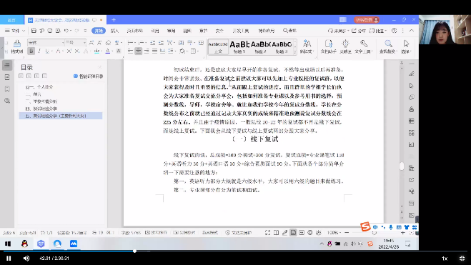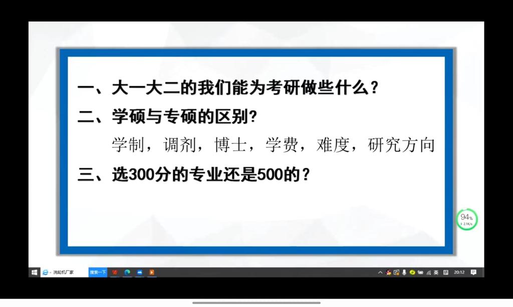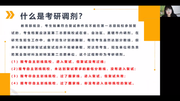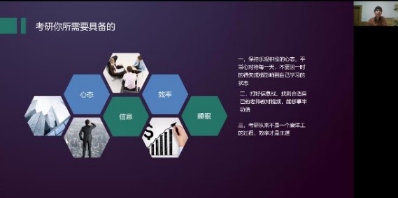 会议开始后,主持人首先介绍了此次经验交流会的目的和意义。接着深入分析当下的考研形势,鼓励同学们积极考研,努力拼搏,最后依次介绍了此次经验交流的优秀同学。本次线上交流会安排紧密,同学们无私分享,干货满满。