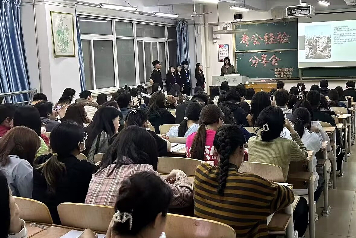 2023年5月11日晚,学院在逸夫教学楼A311教室召开公务员考试经验分享会。孙浩、林承龙,赵梓杰、任艳茹、王一诺、林乐佳、张佳茹等7名通过公务员和选调生考试的2023届毕业生应邀为130余名同学作经验分享和交流。本次交流会由学院分团委、学生会、就业自我指导委员会、自律委员会共同举办。