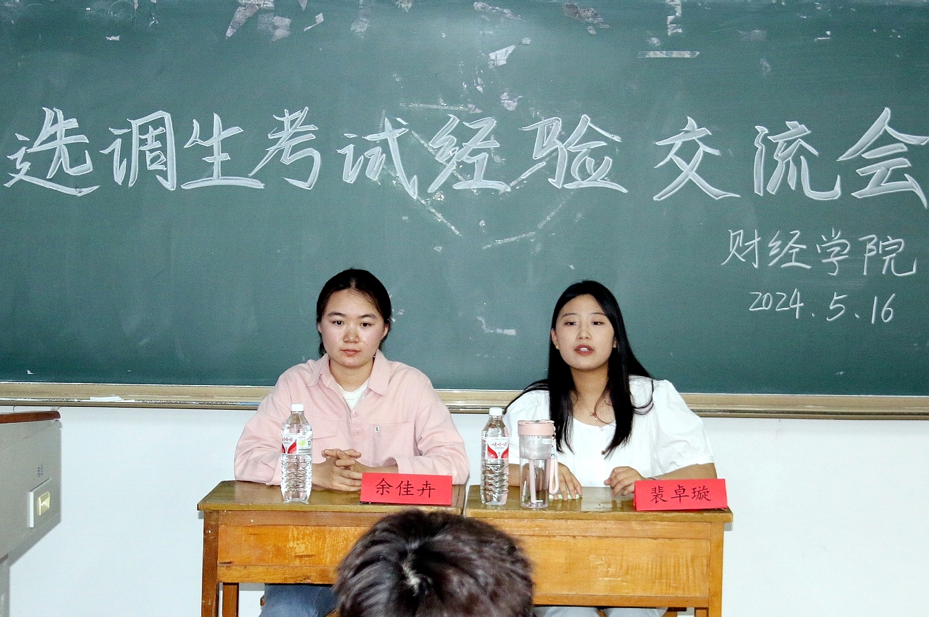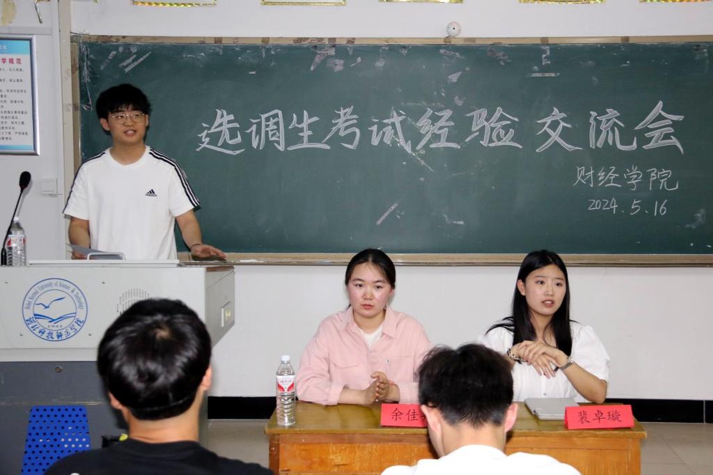 2024年5月16日,学院选调生考试经验交流会在逸夫楼A601教室举办。2020级国际经济与贸易专业学生裴卓璇、电子商务专业余佳卉两位嘉宾应邀做选调生考试经验交流。学院20余名对选调生考试感兴趣的同学参加交流会。2021级国际经济与贸易专业学生赵佳鑫、付建豪主持交流会。