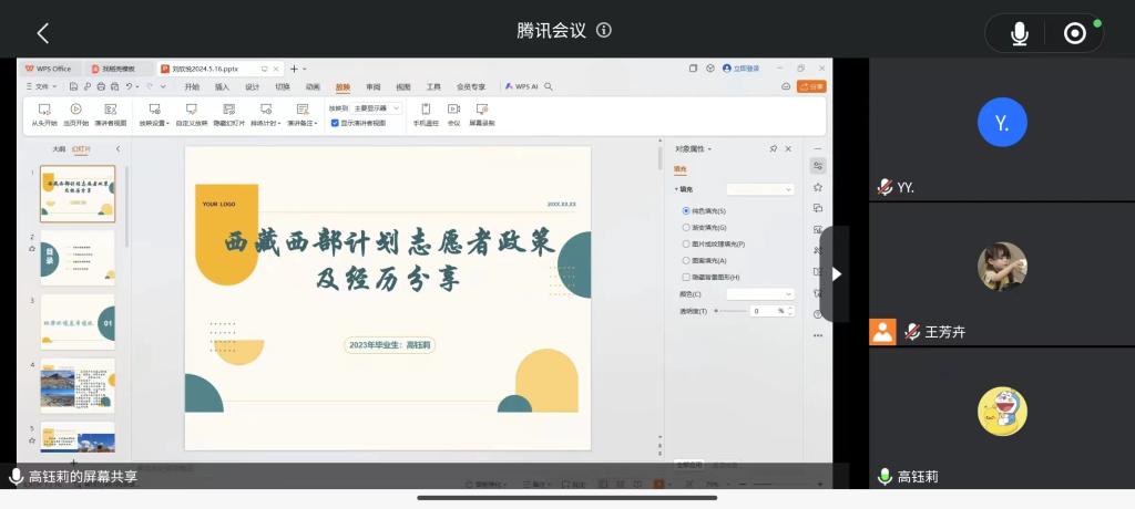 交流会邀请到目前正在西藏自治区、河北省曲阳县进行西部计划和乡村振兴计划志愿服务的高钰莉、刘欣悦、吉笑薇三位毕业生,他们分别从项目选拔流程、应试技巧、志愿服务工作内容以及地方相关政策待遇等方面与同学们进行了深度的经验分享交流和答疑解惑。本次活动使同学们对于国家基层志愿服务项目的政策与实践都有了更加全面详细的了解,也对于接下来的个人选择以及具体岗位对接具有重要的指导意义和参考价值。从更大层面而言,本次交流会对于增强同学们的社会责任感,激发我校学生服务基层、服务西部的热情同样具有重要的现实意义。(编审:路荞华 审核:李强华)
