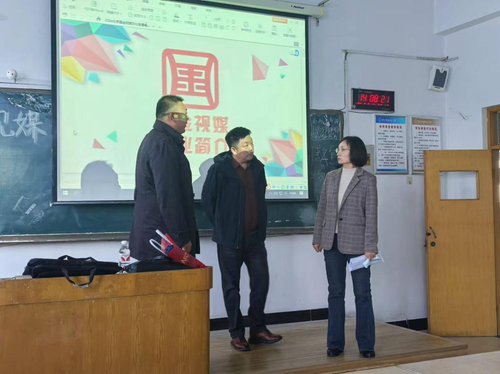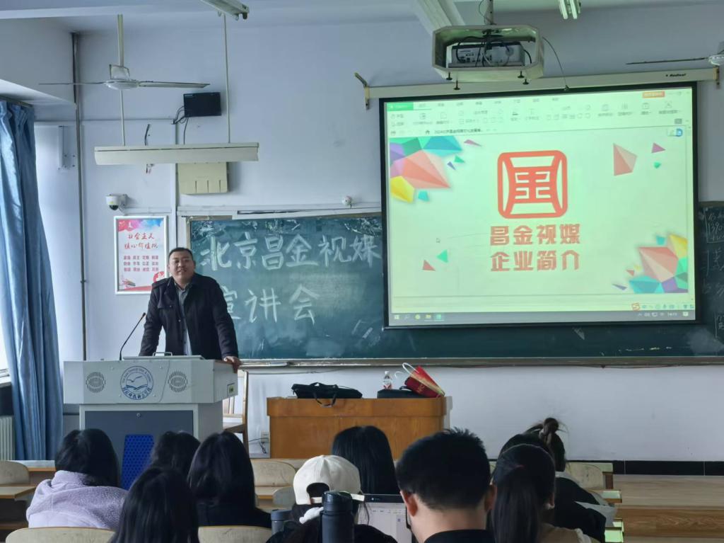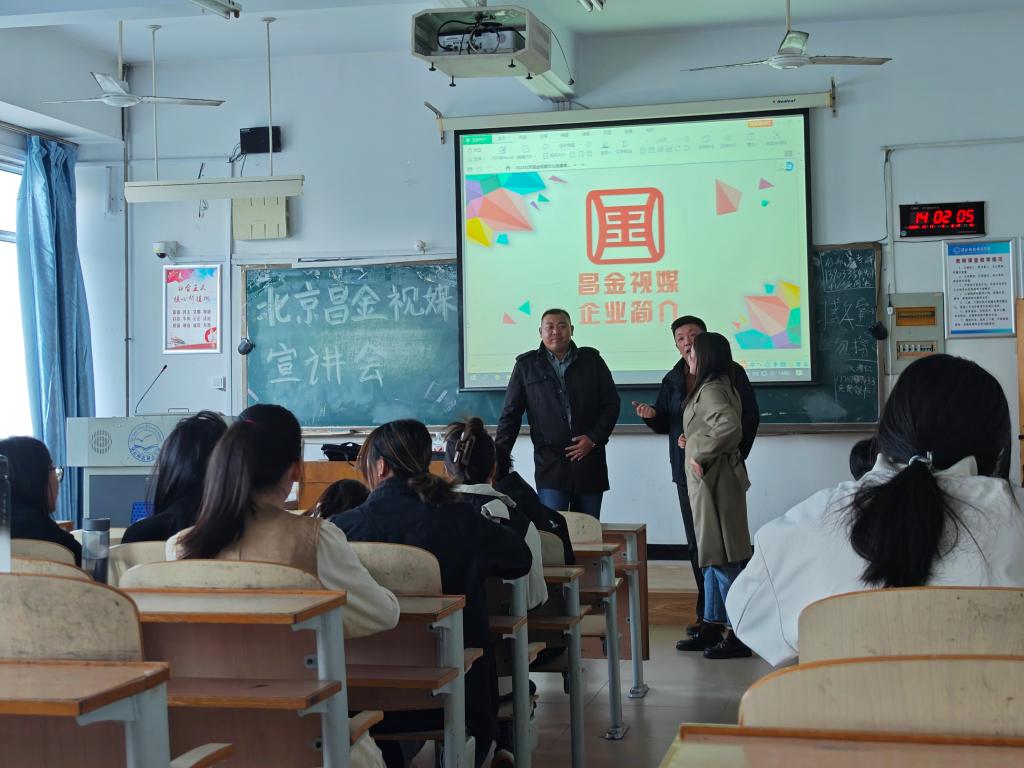 此次宣讲主要面向电子商务、国际经济与贸易专业的学子共计20余人。宣讲会现场,张经理首先对北京昌金视媒文化发展有限公司进行了全面而深入的介绍,包括公司的发展历程、业务范围、经营逻辑以及新媒体行业在未来良好的发展趋势。他表示,公司非常重视人才的培养和发展,将为新员工提供广阔的发展空间和良好的职业晋升通道。