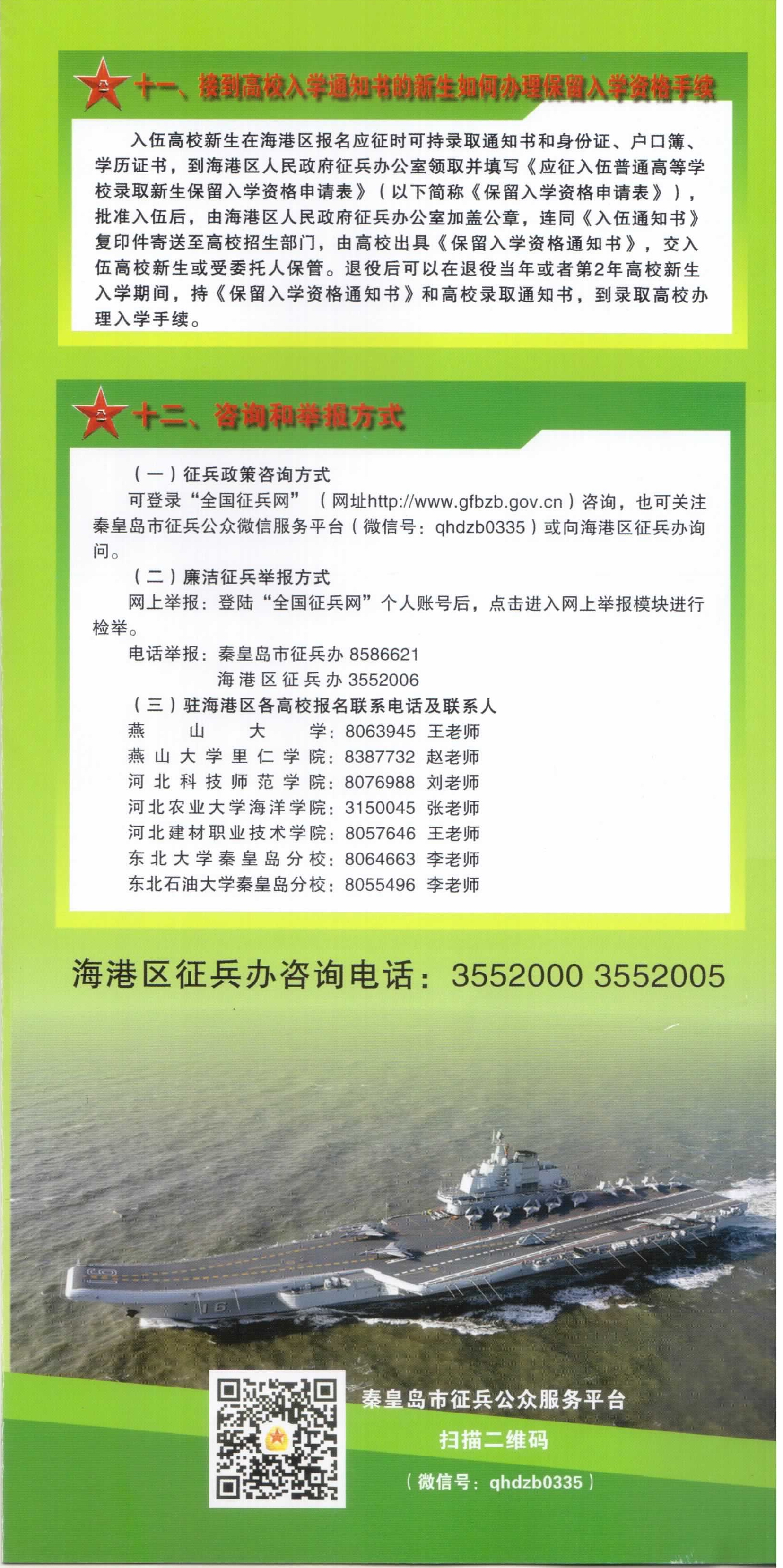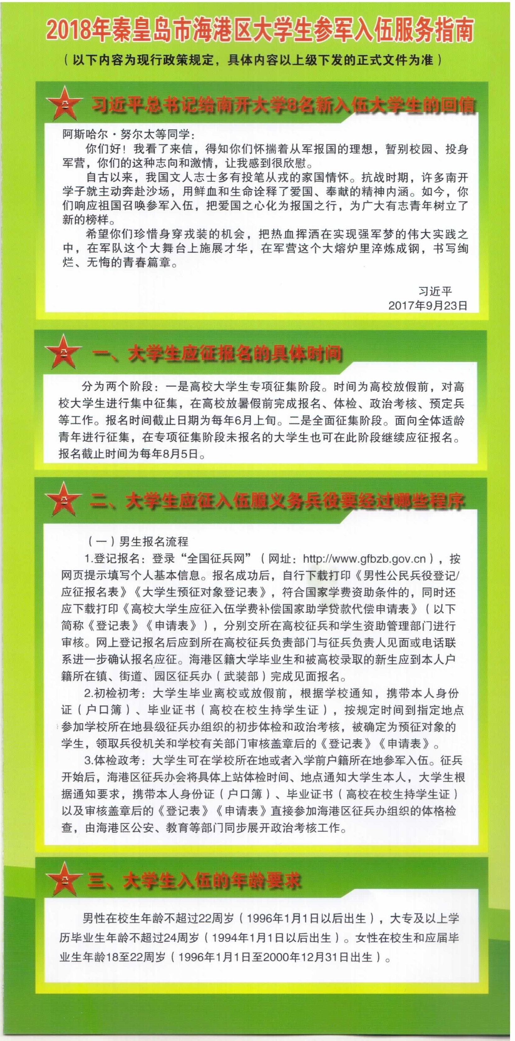 2018年秦皇岛市海港区大学生参军入伍服务指南