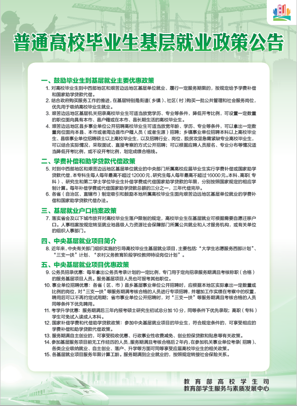 图为普通高校毕业生基层就业政策公告