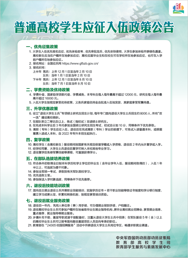 图为普通高校学生应征入伍政策公告