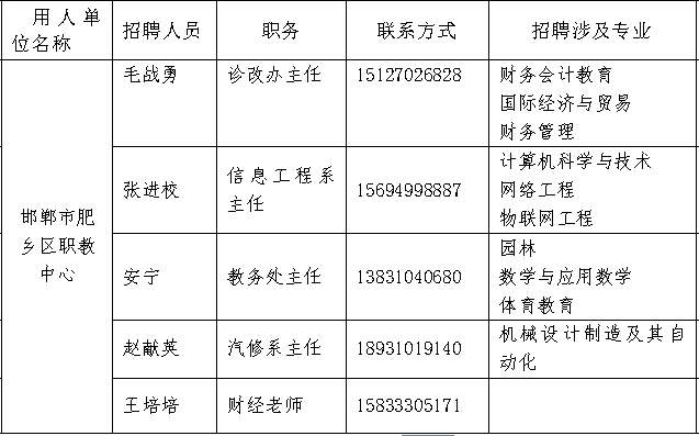 邯郸市肥乡区职教中心用人需求