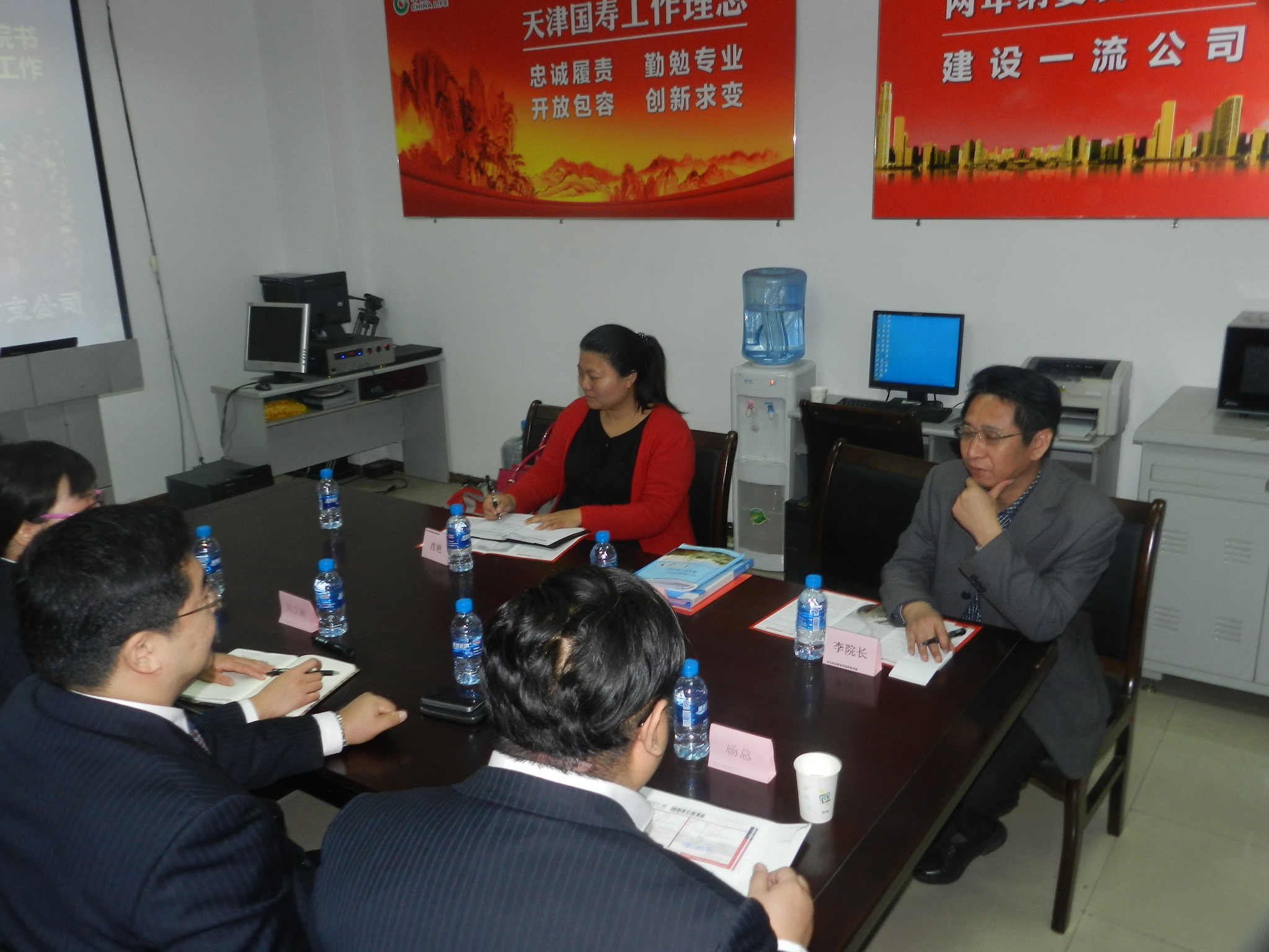 图为与中国人寿天津城区理财中心座谈