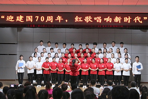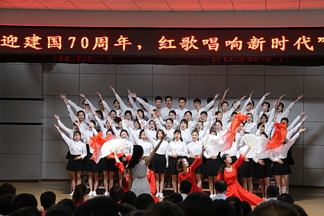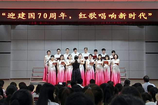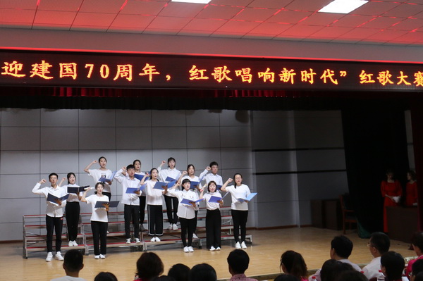 为了迎接伟大中华人民共和国成立70周年,2019年6月27日,金沙检测线路js95于在多功能厅举办了以“迎中华人民共和国成立70周年,红歌唱响新时代”为主题的红歌大赛。3支教工代表队和7个专业的学生代表队近500名师生欢聚一堂,引吭高歌。