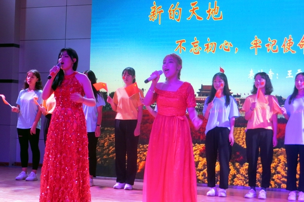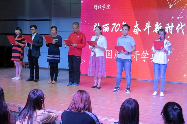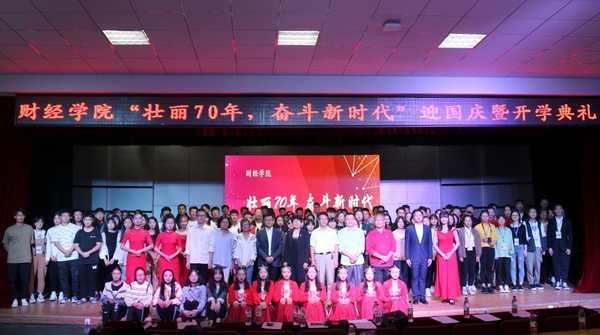 2019年9月25日晚,学院在多功能厅召开“壮丽70年,奋斗新时代”迎国庆晚会暨2019级学生开学典礼。学院党政领导、教学部负责人出席,学院党委书记宋文华致辞。300余名师生齐聚一堂,喜迎国庆,共话成长。