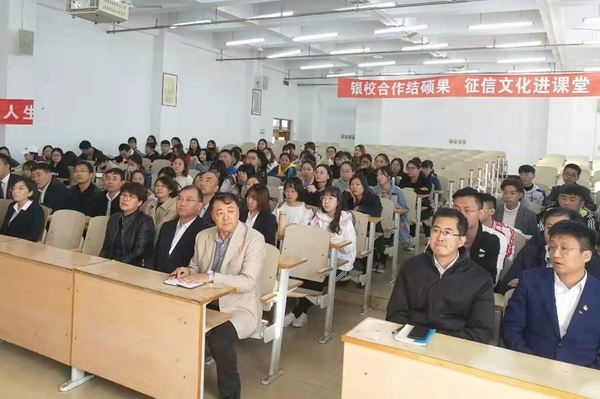 张自力副行长在致辞中,希望同学们充分认识征信的重要意义,提高信用意识,提高辨别能力,培养理性消费观念。随后,秦皇岛市银行业金融机构征信宣讲团宣讲专家结合自身业务,通过实际案例,深入浅出地讲解了现代征信知识,为我院师生讲授征信实务第一课。根据银校双方约定,《现代征信学》课程由我校教师讲授理论部分,由秦皇岛市银行业金融机构征信讲师讲授实务部分。这是我校作为秦皇岛市征信文化教育实践基地,与中国人民银行秦皇岛市中心支行开展银校战略合作又一次成功实践。