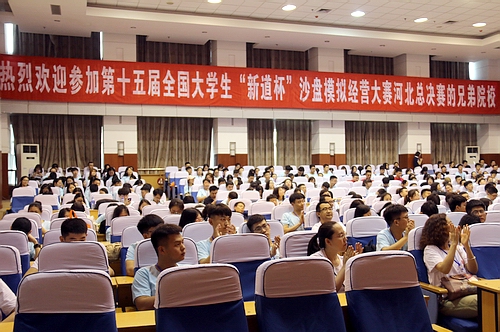2019年6月3日上午,第十五届全国大学生“新道杯”沙盘模拟经营大赛河北总决赛开幕式在河北科技师范学院学术交流中心隆重召开。金沙检测线路js95院长于红军主持开幕式。