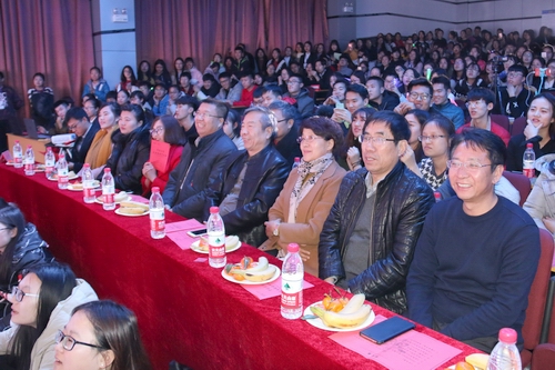 在喜庆欢快的《好运来》歌舞表演中,文艺表演拉开帷幕。展现青春活力的爵士舞《BANG BANG》,倡导孝老敬亲的小品《回家过年》,诠释青春的歌曲《友情岁月》、《像我这样的人》、《让我留在你身边》、《爱,很简单》,富有异域风情的舞蹈《印度阿妹》,充满神秘气息的魔术《读心术》逐次呈现在观众面前,激起观众阵阵掌声。婀娜曼妙的民族舞《采薇》赢得喝彩不断,研究生异装舞蹈《黑白键》让人赞叹不已,学生会部长们的歌舞串烧引发全场沸腾。文艺演出在师生共同演唱的歌曲串烧声中圆满落幕。