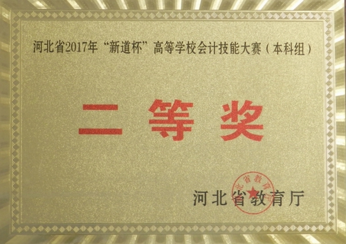 2017年12月2日,由河北省教育厅主办,河北地质大学承办,新道科技股份有限公司协办的河北省2017年“新道杯”高等学校会计技能大赛在河北地质大学隆重举行。大赛分为高职组、本科组和教师组,共吸引了95支队伍、近500名师生参加。我院选派的两个团队代表学校分获本科组一等奖和二等奖。