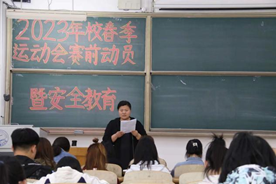2023年春季运动会赛前动员暨安全教育大会于2023年4月19日13:00在A109正式开展。本次大会目的在于树立各位运动员的安全防范意识与增强各位参赛选手的参赛热情,为2023年春季运动会的顺利进行形成有效保障。