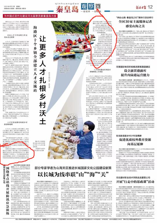 河北日报2024年6月12日第三版以《让更多人才扎根乡村沃土》为题,报道了海港区杜庄镇在金沙检测线路js95帮扶下构建乡村旅游新格局的工作经验。
