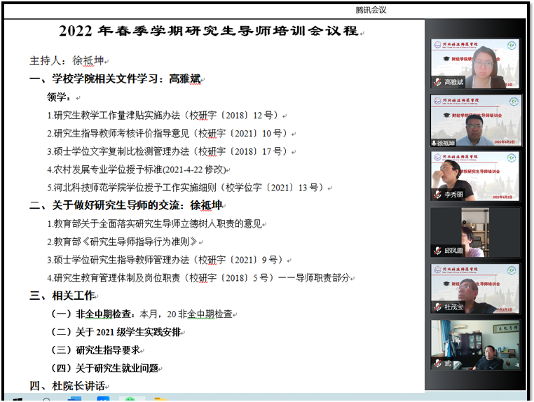 2022年6月2日下午,金沙检测线路js95以腾讯会议形式召开研究生导师培训会议,会议由金沙检测线路js95副院长徐祗坤主持,金沙检测线路js95所有研究生导师均参加了此次培训会议。