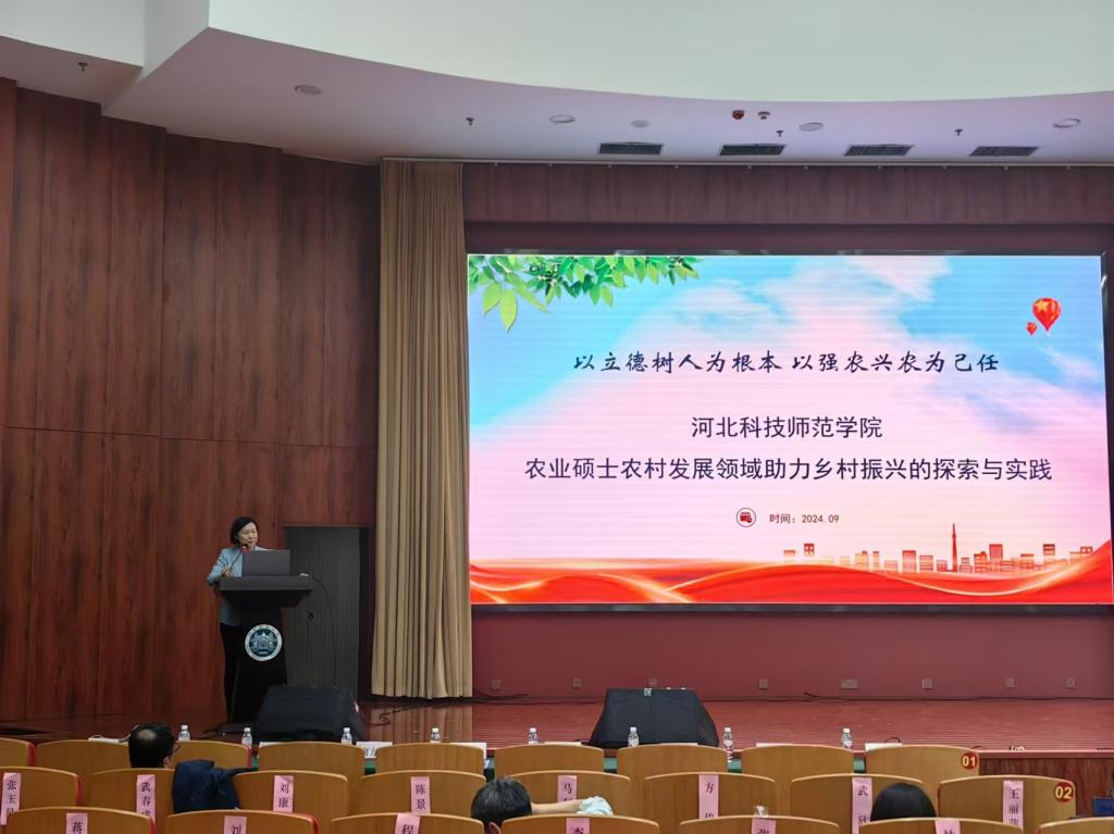 我校研究生部及二级学院从事研究生教育、学科建设的相关教师应邀出席了会议;会上,农业硕士农村发展领域学科带头人闫文教授做了题为“以立德树人为根本,以强农兴农为己任,河北科技师范学院农村发展领域助力乡村振兴的探索与实践”的交流报告。报告从“菜单式”服务社会、“宣讲团”促进合作、“恳谈会”助力发展等几个方面出发,以农村发展领域为例,对我校作为地方应用型高校在专业硕士培养方面的特色做法进行了介绍。