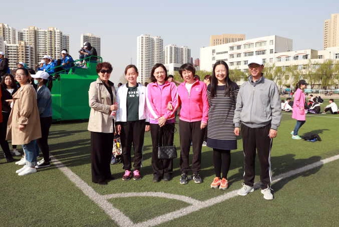 图为宋文华书记和李宝文副书记同我院女教工接力队队员合影