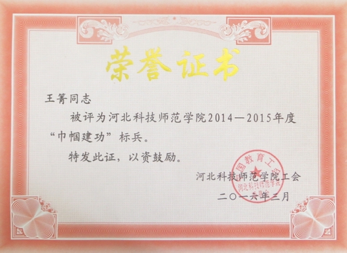 图为荣誉证书