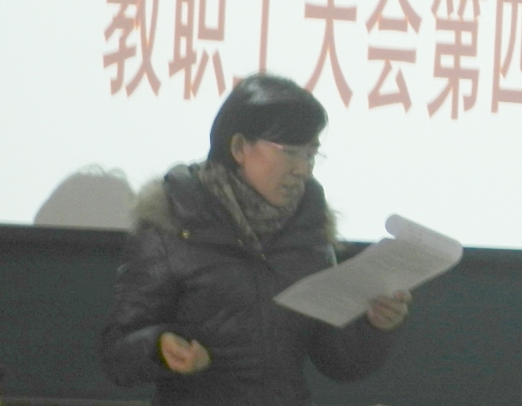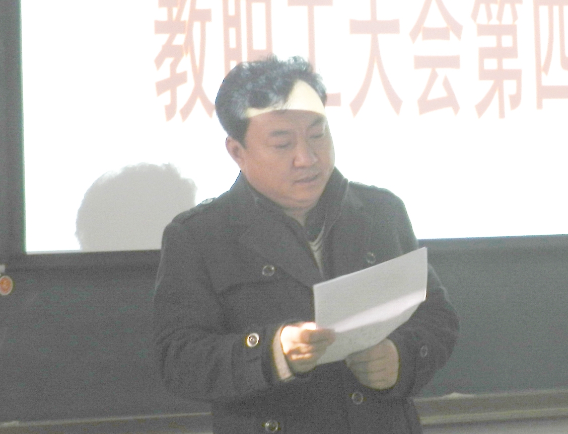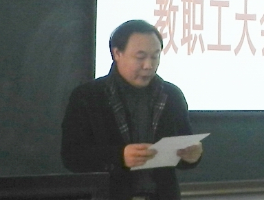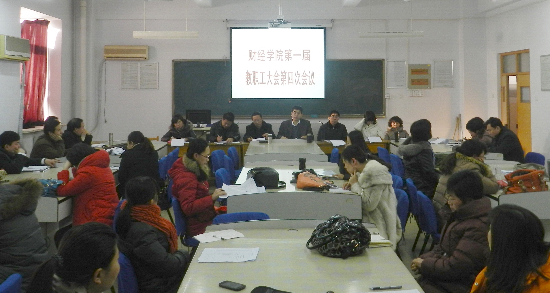 2014年1月15日上午,学院第一届教职工大会第四次全体会议在逸夫教学楼A703召开。会议在学院工会主席徐祗坤同志主持下,审议通过了贾圣武同志所作的《2013年院长工作报告》,审议通过了徐祗坤同志所作的《2013年工会工作报告》,审议通过了杜茂宝同志所作的《一届三次教职会提案处理情况报告》和《一届四次教职会提案情况报告》,审议通过了《2013年教职工年度考核办法》。作为沟通和激励的重要尝试,本次会议增加了学院科级干部述职考核议题。学院党委书记张建宗同志致闭幕词。大会圆满完成预定的工作,胜利闭幕。
