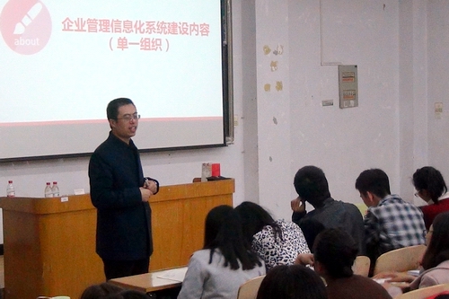 2016年10月24日晚,学院在逸夫楼B206邀请新道科技股份有限公司河北分公司服务总监田高峰作讲座,讲座的主题是“企业管理信息化系统建设”。150余名师生参加讲座。 本次讲座主要内容涉及企业信息化发展趋势、企业...[详细]
