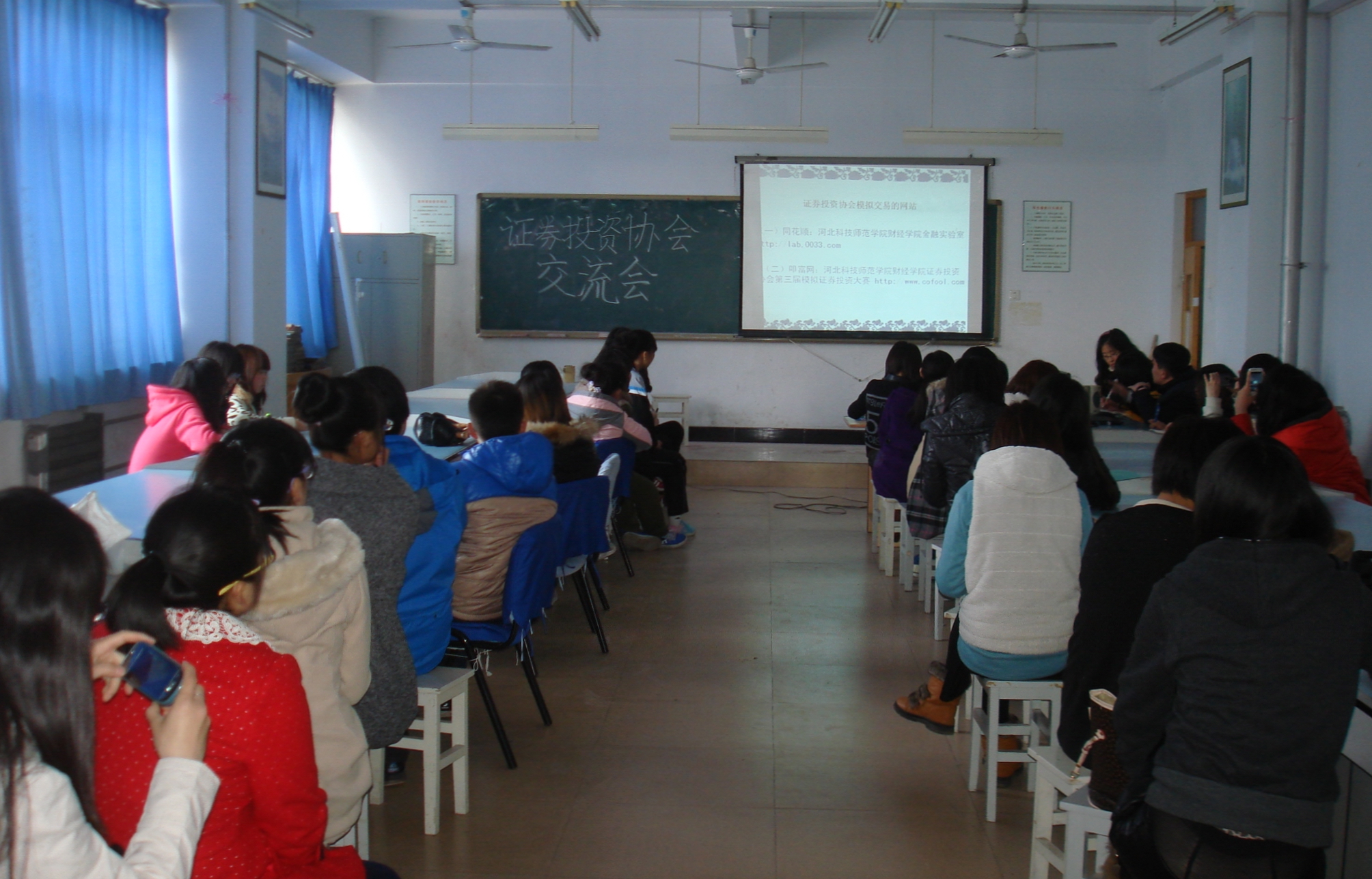2013年4月12日下午,金沙检测线路js95学生证券投资协会在A706举行股票投资培训。本次培训由协会指导教师王亦明副教授主讲,协会骨干20余人参加了培训。培训中,王亦明副教授讲解了股票投资基础知识,演示了即将举行的股票...[详细]