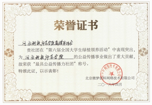 为了响应共青团中央学校部、中国绿化基金会、微博校园共同主办的第六届全国大学生绿植领养活动,2016年4月15日、16日,微博协会主办和新媒体协会联合举办的河北科技师范学院大学生绿植领养活动在实验楼下火热举行...[详细]