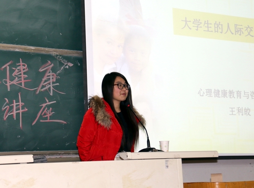 2015年12月3日下午,学院举办大学生人际交往心理健康知识讲座,讲座由学校心理咨询教师、心理学专业硕士、国家二级心理咨询师王利皎主讲。王老师结合心理调研中发现的大学生人际交往问题,详细地讲解了相关心理健...[详细]