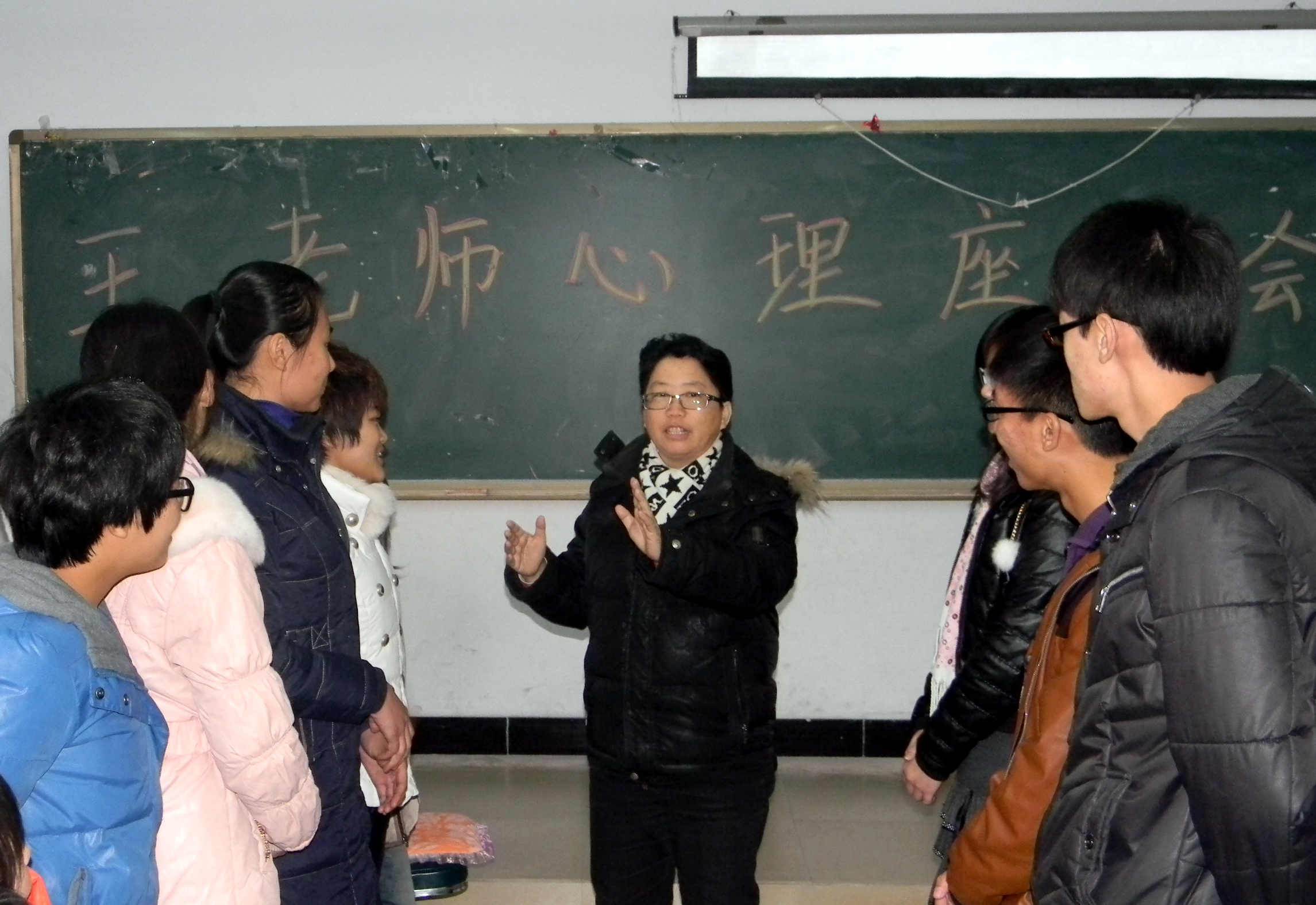12月5日下午,学生处心理咨询师王晓坤老师在A706教室和电子商务专业12级同学举行座谈。座谈以王老师指导同学做游戏开始。在轻松愉快的氛围中,王老师和同学们进行了坦诚的交流,对同学们的同学交往困惑、学习压力...[详细]