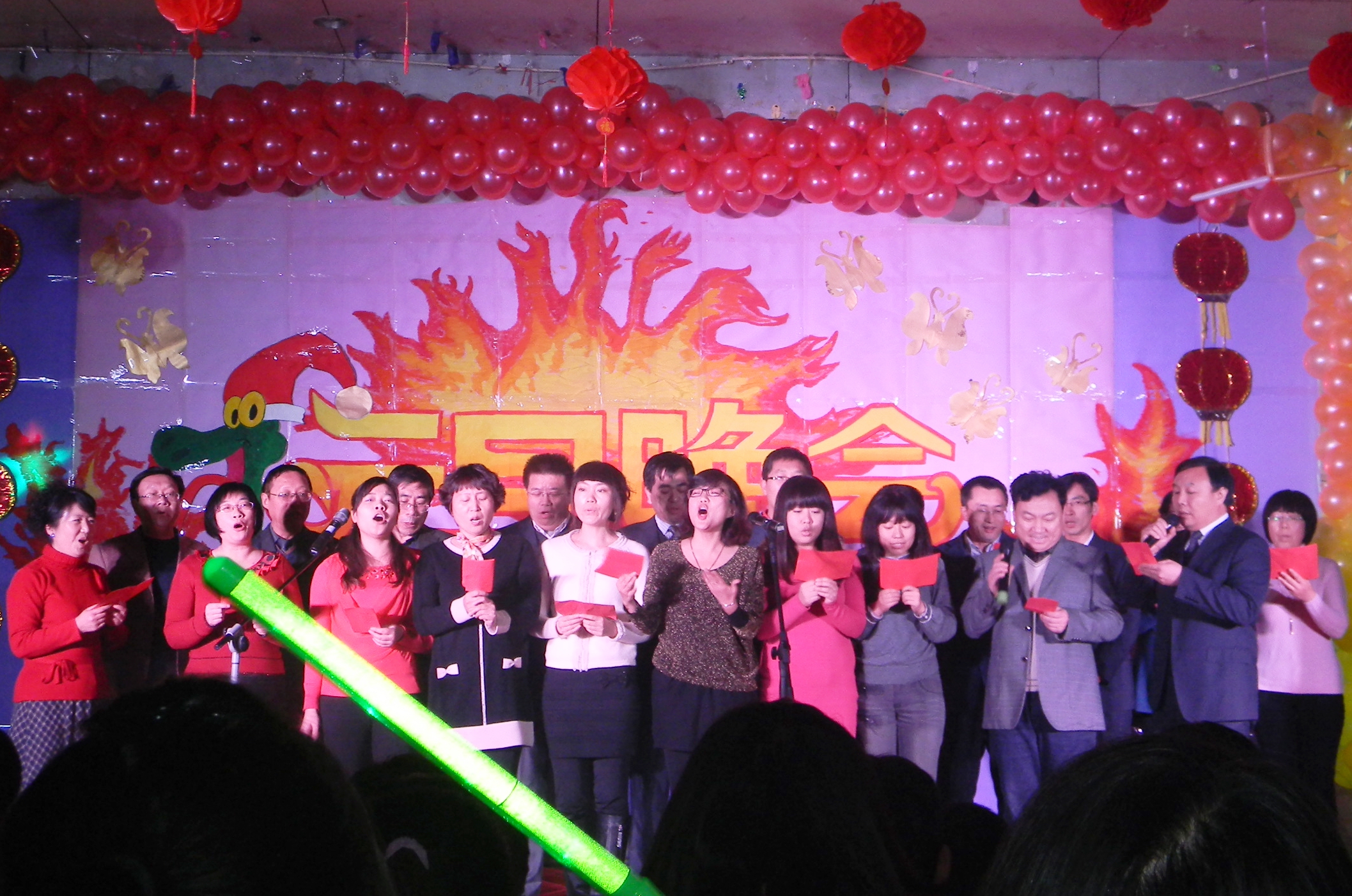 2012年12月28日晚在老楼104举行元旦晚联欢晚会。学院全体党政领导和同学们欢聚一堂,以饱满的热情共同迎接2013年的到来。 图为全体党政领导和辅导员、班主任合唱《大中国》[详细]