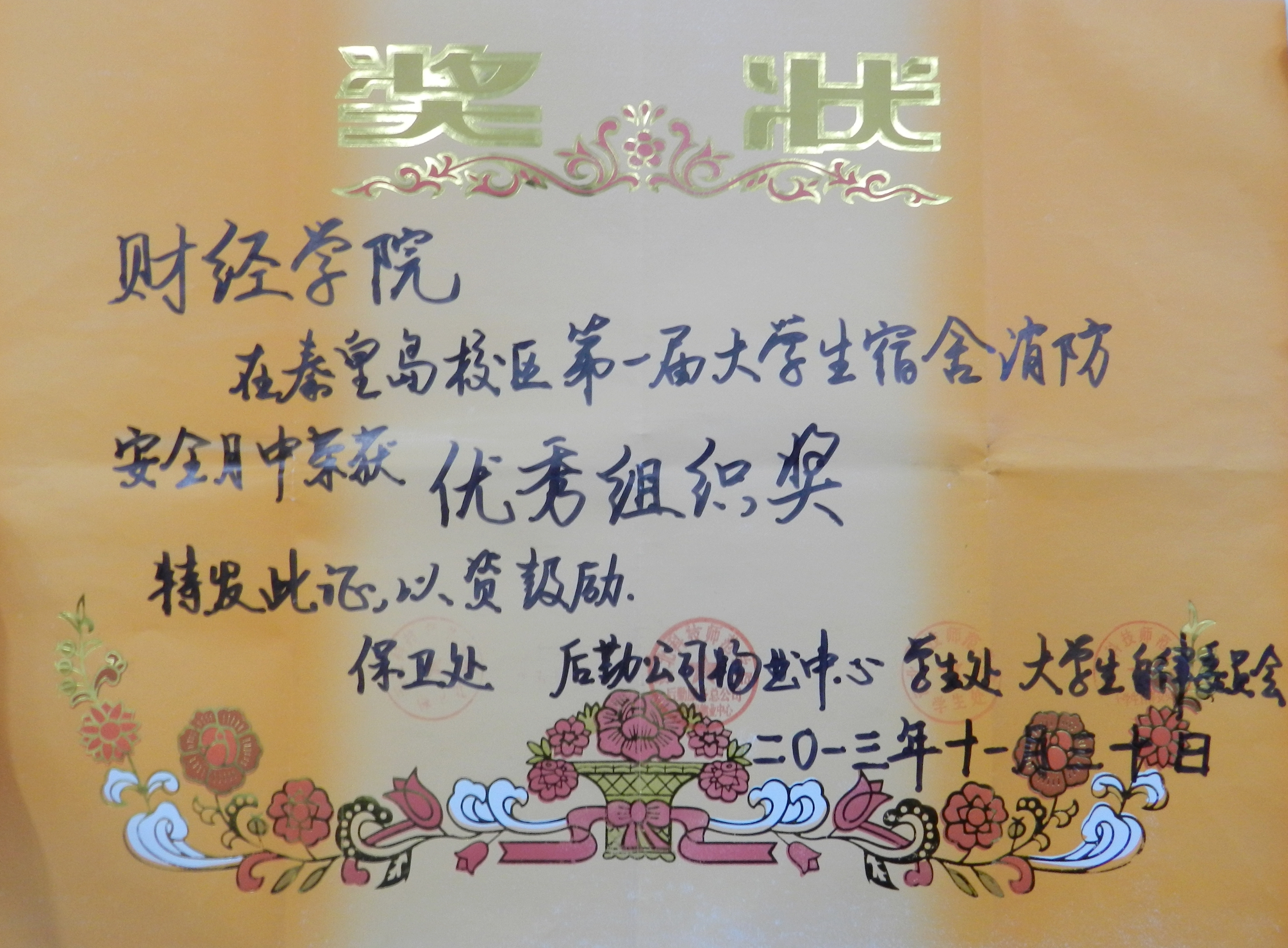 近日,由校学生处、保卫处、后勤公司物业中心、大学生自律委员会举办的秦皇岛校区第一届大学生宿舍消防安全月圆满结束,我院荣获优秀组织奖。 图为奖状[详细]